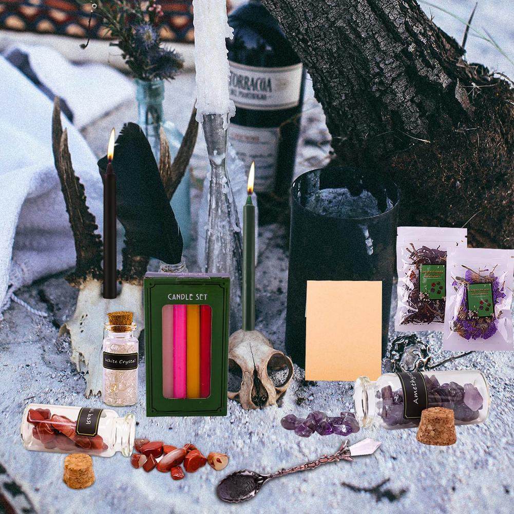 A selection of kits, candles and a special set of runes.